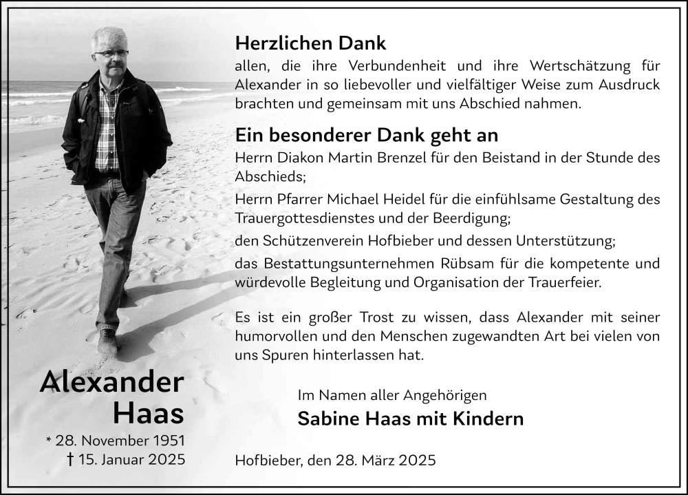 Hier finden Sie alle Traueranzeigen aus der Zeitung, die bisher für Alexander Haas erschienen sind. Weitere Traueranzeigen, die in der Zeitung erscheinen, werden hier ebenfalls aufgelistet
