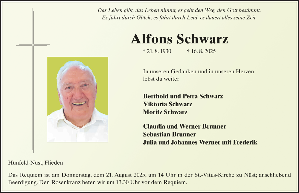 Hier finden Sie alle Traueranzeigen aus der Zeitung, die bisher für Alfons Schwarz erschienen sind. Weitere Traueranzeigen, die in der Zeitung erscheinen, werden hier ebenfalls aufgelistet