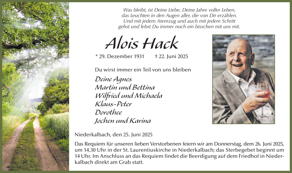Hier finden Sie alle Traueranzeigen aus der Zeitung, die bisher für Alois Hack erschienen sind. Weitere Traueranzeigen, die in der Zeitung erscheinen, werden hier ebenfalls aufgelistet