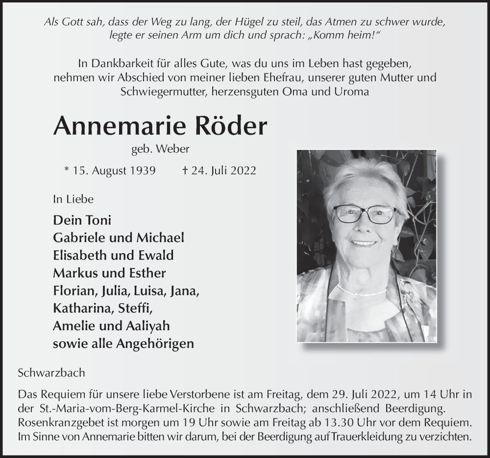 Hier finden Sie alle Traueranzeigen aus der Zeitung, die bisher für Annemarie Röder erschienen sind. Weitere Traueranzeigen, die in der Zeitung erscheinen, werden hier ebenfalls aufgelistet