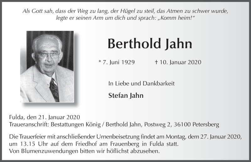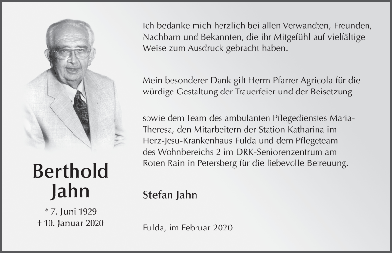 Hier finden Sie alle Traueranzeigen aus der Zeitung, die bisher für Berthold Jahn erschienen sind. Weitere Traueranzeigen, die in der Zeitung erscheinen, werden hier ebenfalls aufgelistet