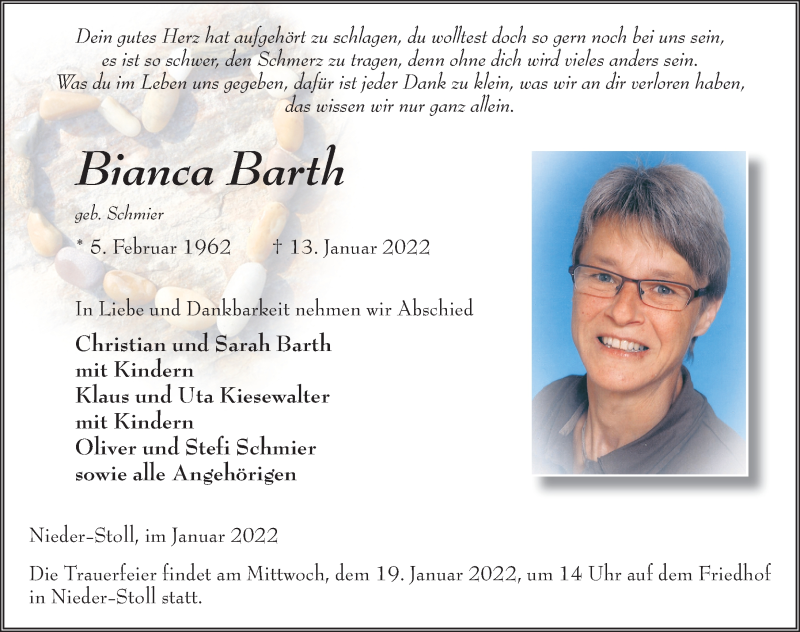 Hier finden Sie alle Traueranzeigen aus der Zeitung, die bisher für Bianca Barth erschienen sind. Weitere Traueranzeigen, die in der Zeitung erscheinen, werden hier ebenfalls aufgelistet