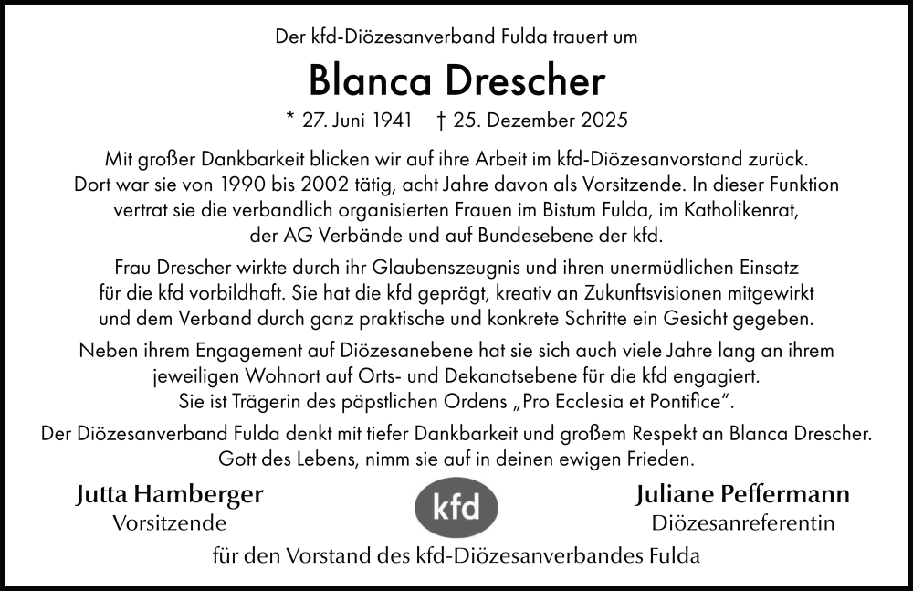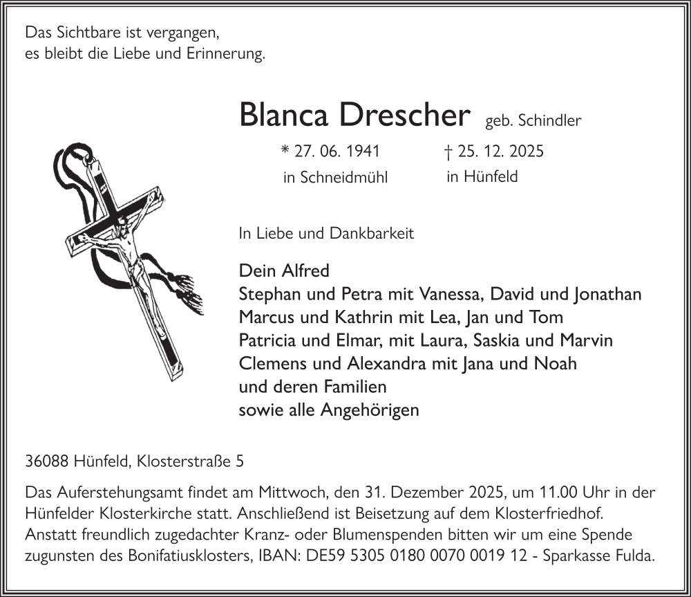 Hier finden Sie alle Traueranzeigen aus der Zeitung, die bisher für Blanca Drescher erschienen sind. Weitere Traueranzeigen, die in der Zeitung erscheinen, werden hier ebenfalls aufgelistet