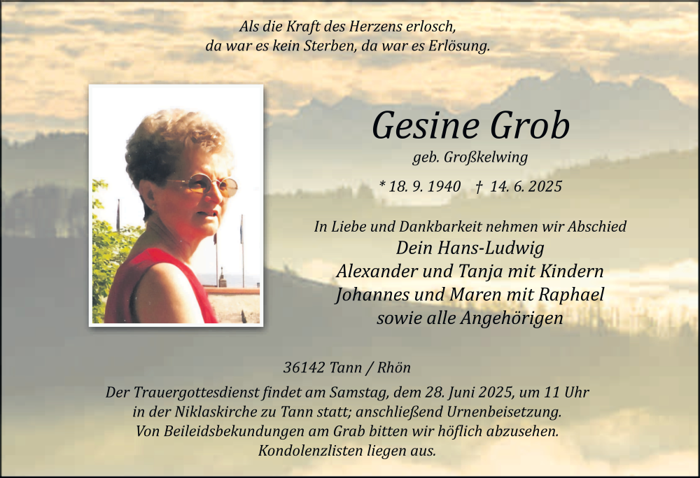 Hier finden Sie alle Traueranzeigen aus der Zeitung, die bisher für Cesine Grob erschienen sind. Weitere Traueranzeigen, die in der Zeitung erscheinen, werden hier ebenfalls aufgelistet