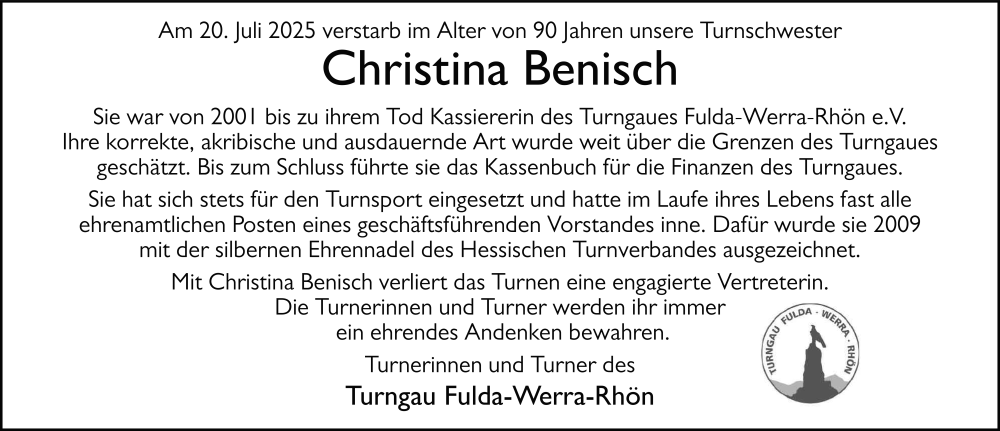 Hier finden Sie alle Traueranzeigen aus der Zeitung, die bisher für Christina Benisch erschienen sind. Weitere Traueranzeigen, die in der Zeitung erscheinen, werden hier ebenfalls aufgelistet