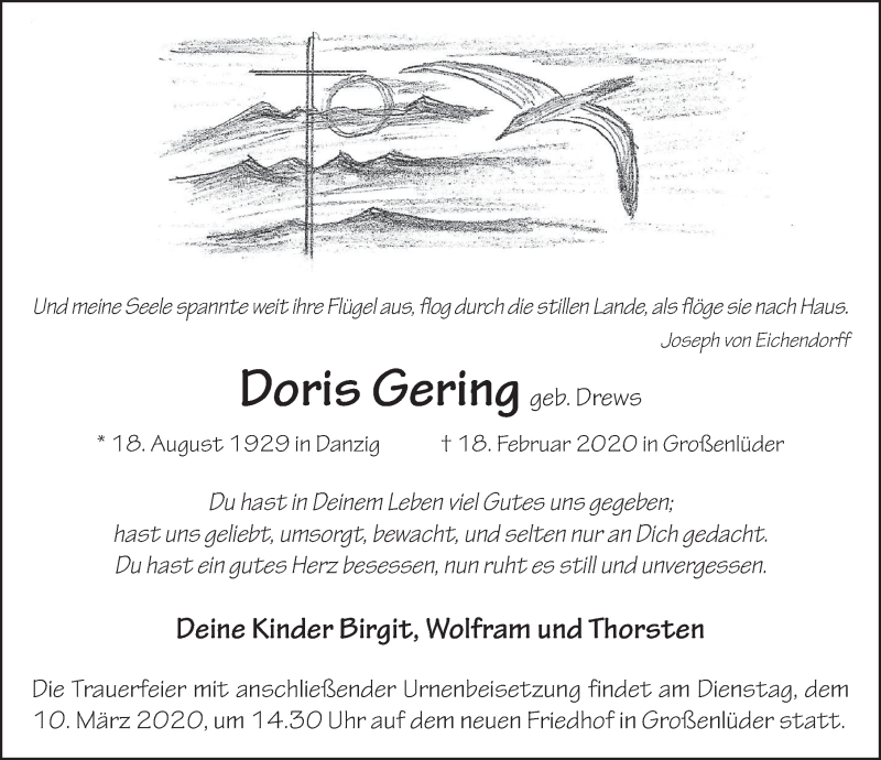 Hier finden Sie alle Traueranzeigen aus der Zeitung, die bisher für Doris Gering erschienen sind. Weitere Traueranzeigen, die in der Zeitung erscheinen, werden hier ebenfalls aufgelistet