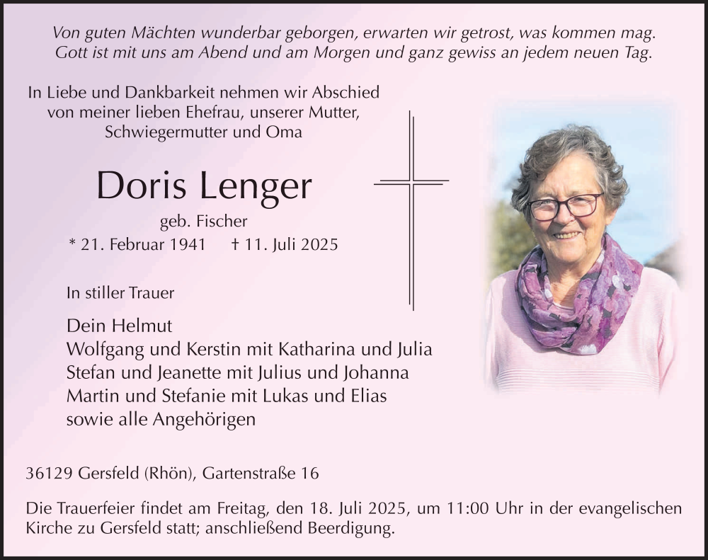 Hier finden Sie alle Traueranzeigen aus der Zeitung, die bisher für Doris Lenger erschienen sind. Weitere Traueranzeigen, die in der Zeitung erscheinen, werden hier ebenfalls aufgelistet