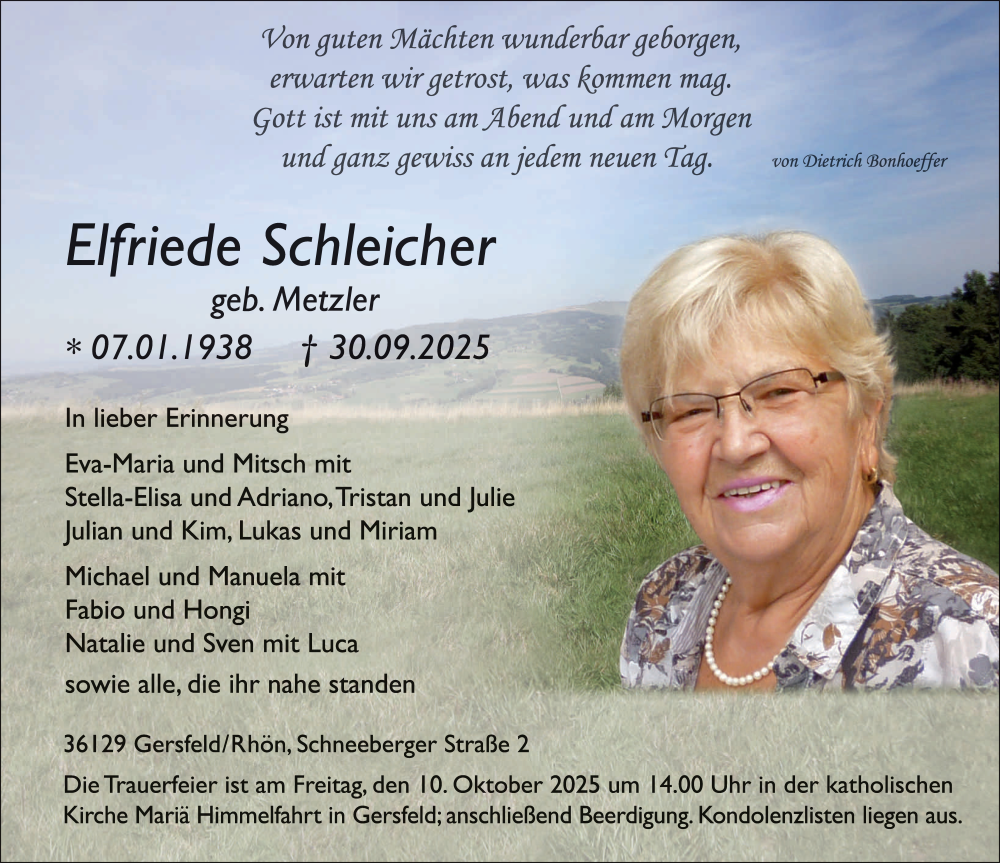 Hier finden Sie alle Traueranzeigen aus der Zeitung, die bisher für Elfriede Schleicher erschienen sind. Weitere Traueranzeigen, die in der Zeitung erscheinen, werden hier ebenfalls aufgelistet