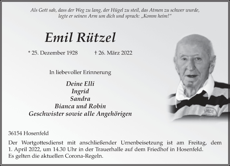 Hier finden Sie alle Traueranzeigen aus der Zeitung, die bisher für Emil Rützel erschienen sind. Weitere Traueranzeigen, die in der Zeitung erscheinen, werden hier ebenfalls aufgelistet