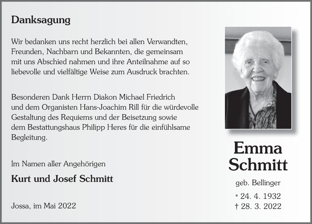 Hier finden Sie alle Traueranzeigen aus der Zeitung, die bisher für Emma Schmitt erschienen sind. Weitere Traueranzeigen, die in der Zeitung erscheinen, werden hier ebenfalls aufgelistet
