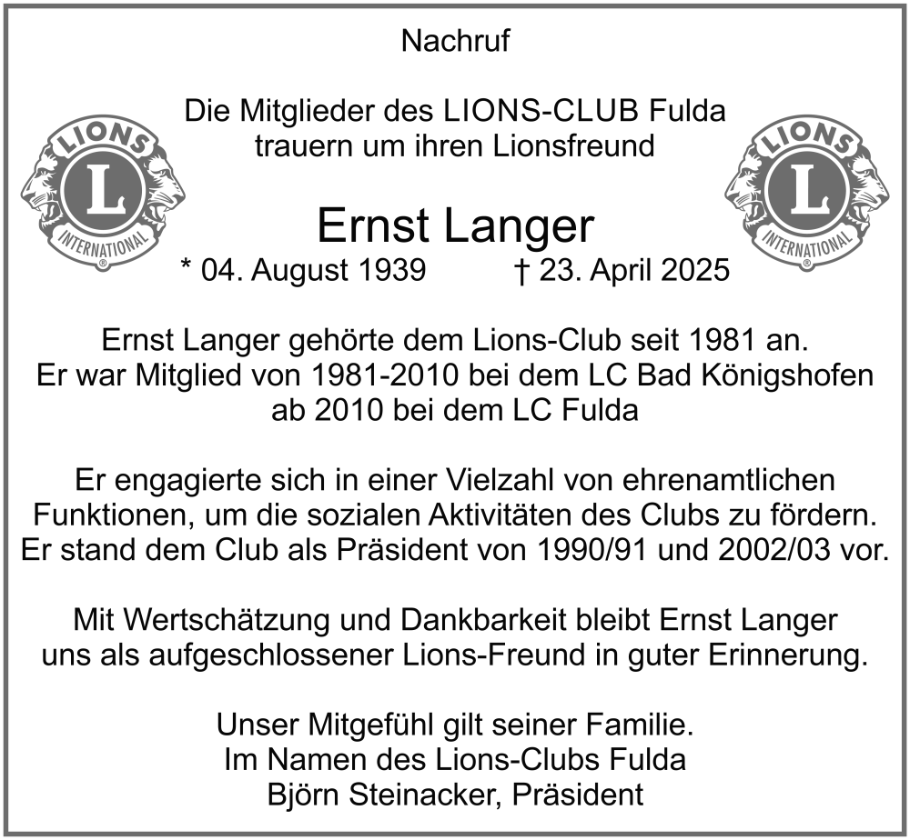Hier finden Sie alle Traueranzeigen aus der Zeitung, die bisher für Ernst-Karl Langer erschienen sind. Weitere Traueranzeigen, die in der Zeitung erscheinen, werden hier ebenfalls aufgelistet