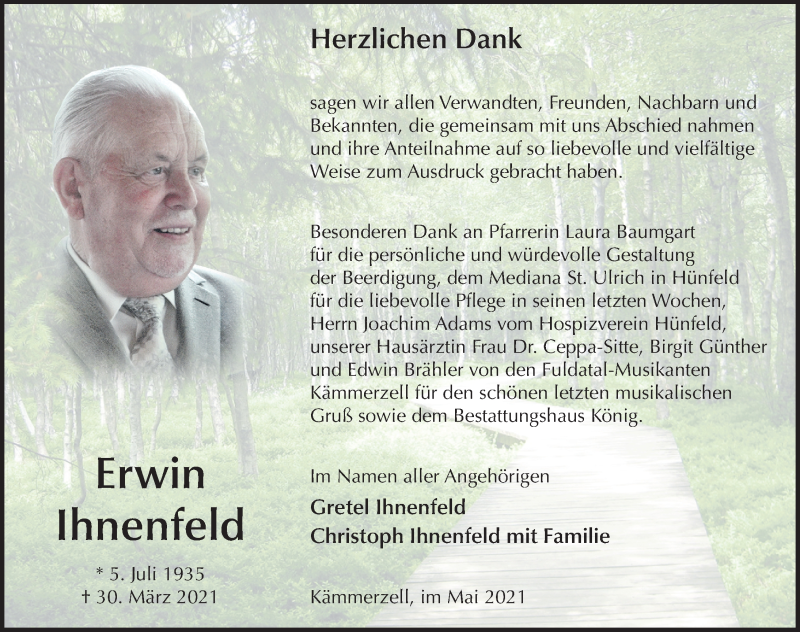 Hier finden Sie alle Traueranzeigen aus der Zeitung, die bisher für Erwin Ihnenfeld erschienen sind. Weitere Traueranzeigen, die in der Zeitung erscheinen, werden hier ebenfalls aufgelistet