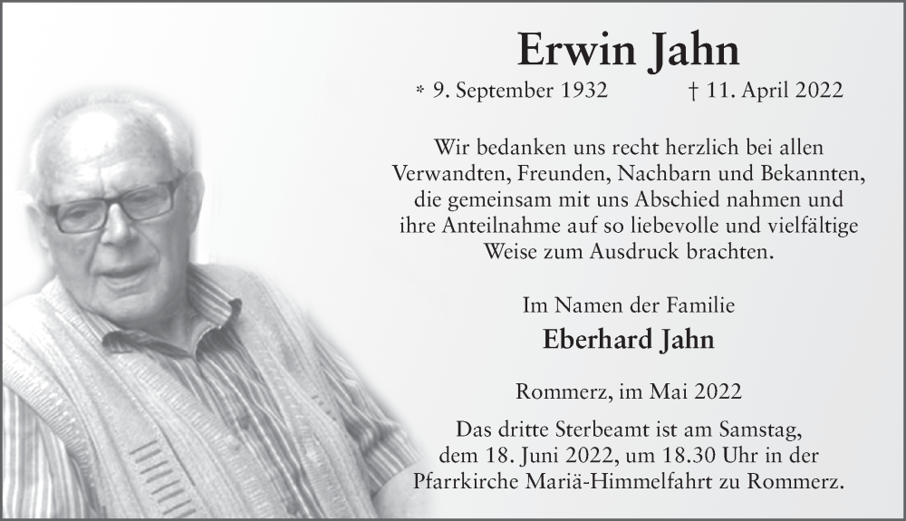 Hier finden Sie alle Traueranzeigen aus der Zeitung, die bisher für Erwin Jahn erschienen sind. Weitere Traueranzeigen, die in der Zeitung erscheinen, werden hier ebenfalls aufgelistet