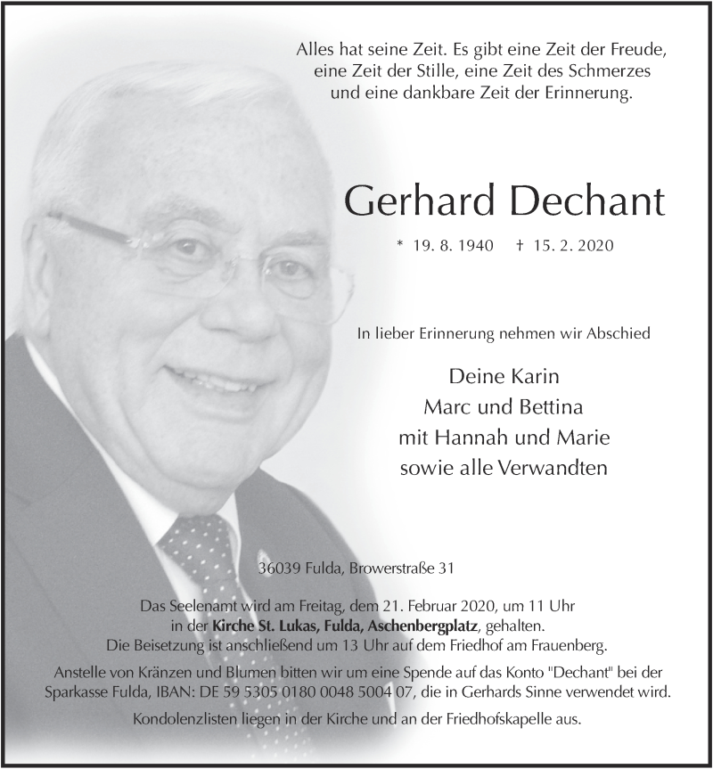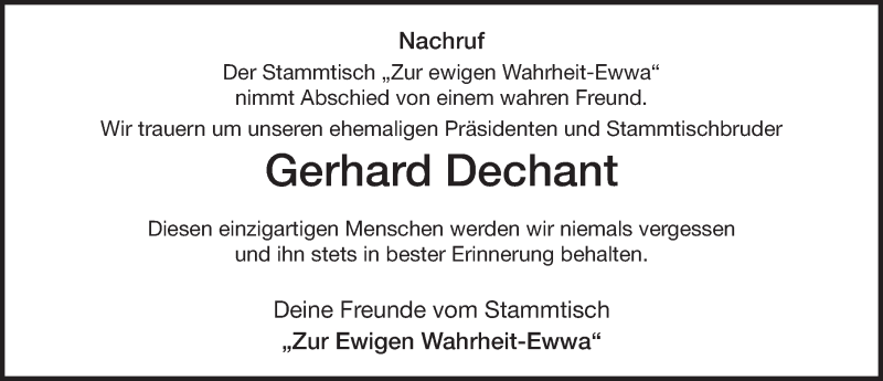 Hier finden Sie alle Traueranzeigen aus der Zeitung, die bisher für Gerhard Dechant erschienen sind. Weitere Traueranzeigen, die in der Zeitung erscheinen, werden hier ebenfalls aufgelistet