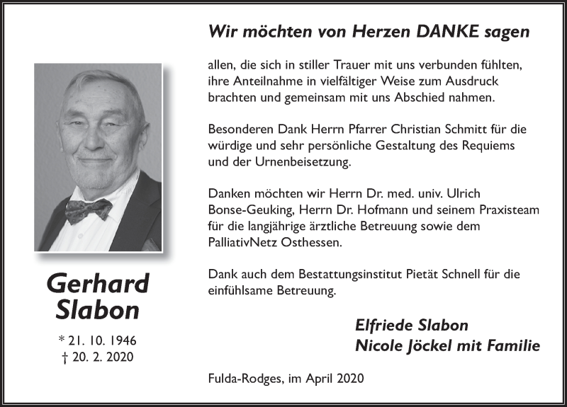Hier finden Sie alle Traueranzeigen aus der Zeitung, die bisher für Gerhard Slabon erschienen sind. Weitere Traueranzeigen, die in der Zeitung erscheinen, werden hier ebenfalls aufgelistet