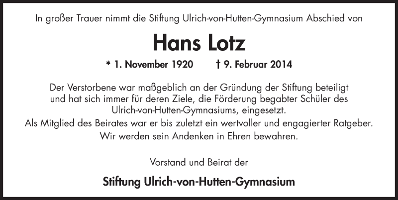 Hier finden Sie alle Traueranzeigen aus der Zeitung, die bisher für Hans Latz erschienen sind. Weitere Traueranzeigen, die in der Zeitung erscheinen, werden hier ebenfalls aufgelistet