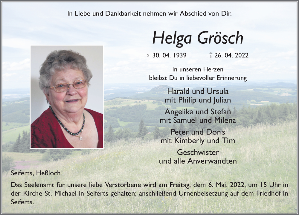Hier finden Sie alle Traueranzeigen aus der Zeitung, die bisher für Helga Grösch erschienen sind. Weitere Traueranzeigen, die in der Zeitung erscheinen, werden hier ebenfalls aufgelistet