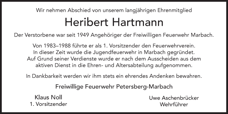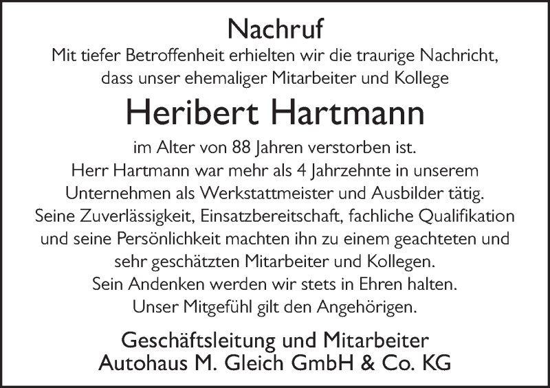 Hier finden Sie alle Traueranzeigen aus der Zeitung, die bisher für Heribert Hartmann erschienen sind. Weitere Traueranzeigen, die in der Zeitung erscheinen, werden hier ebenfalls aufgelistet