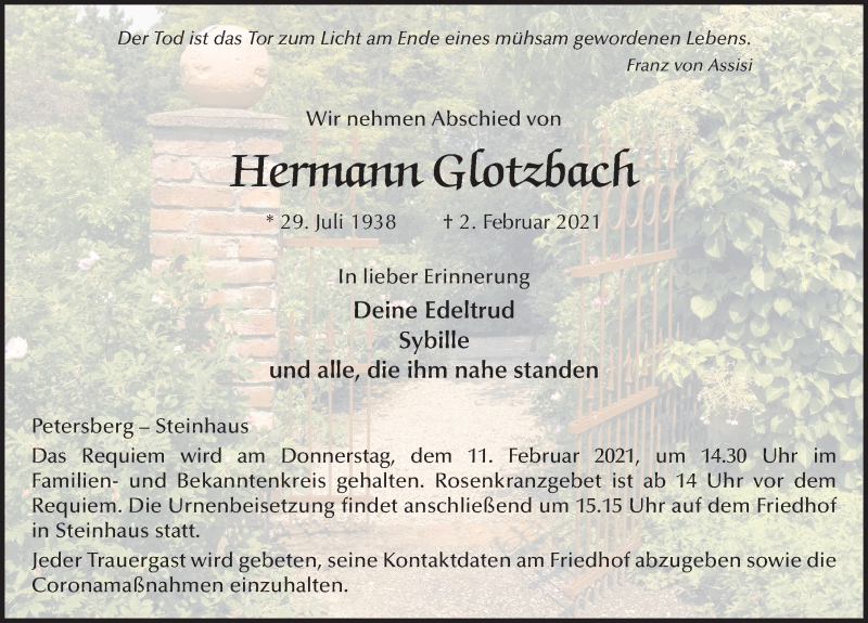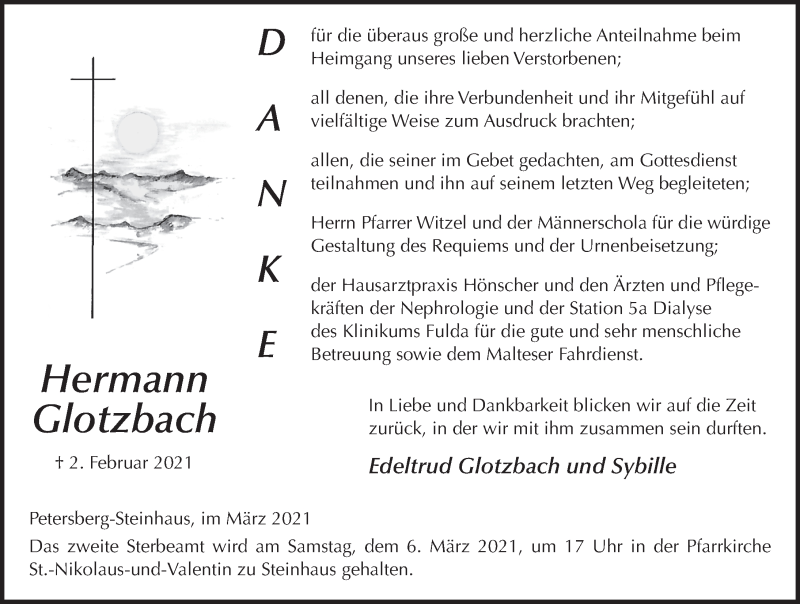 Hier finden Sie alle Traueranzeigen aus der Zeitung, die bisher für Hermann Glotzbach erschienen sind. Weitere Traueranzeigen, die in der Zeitung erscheinen, werden hier ebenfalls aufgelistet