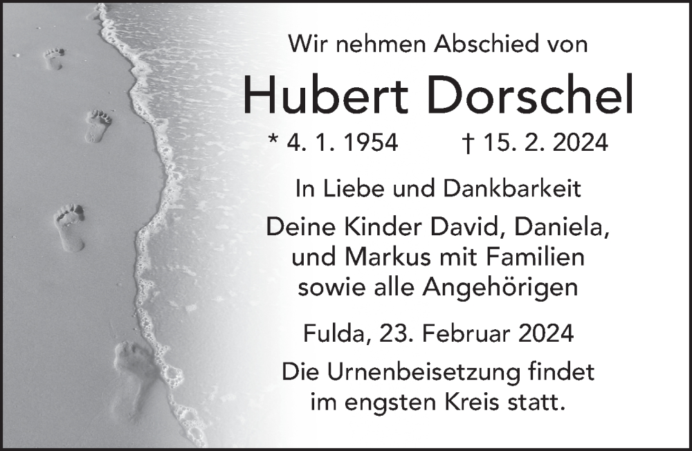 Hier finden Sie alle Traueranzeigen aus der Zeitung, die bisher für Hubert Dorschel erschienen sind. Weitere Traueranzeigen, die in der Zeitung erscheinen, werden hier ebenfalls aufgelistet