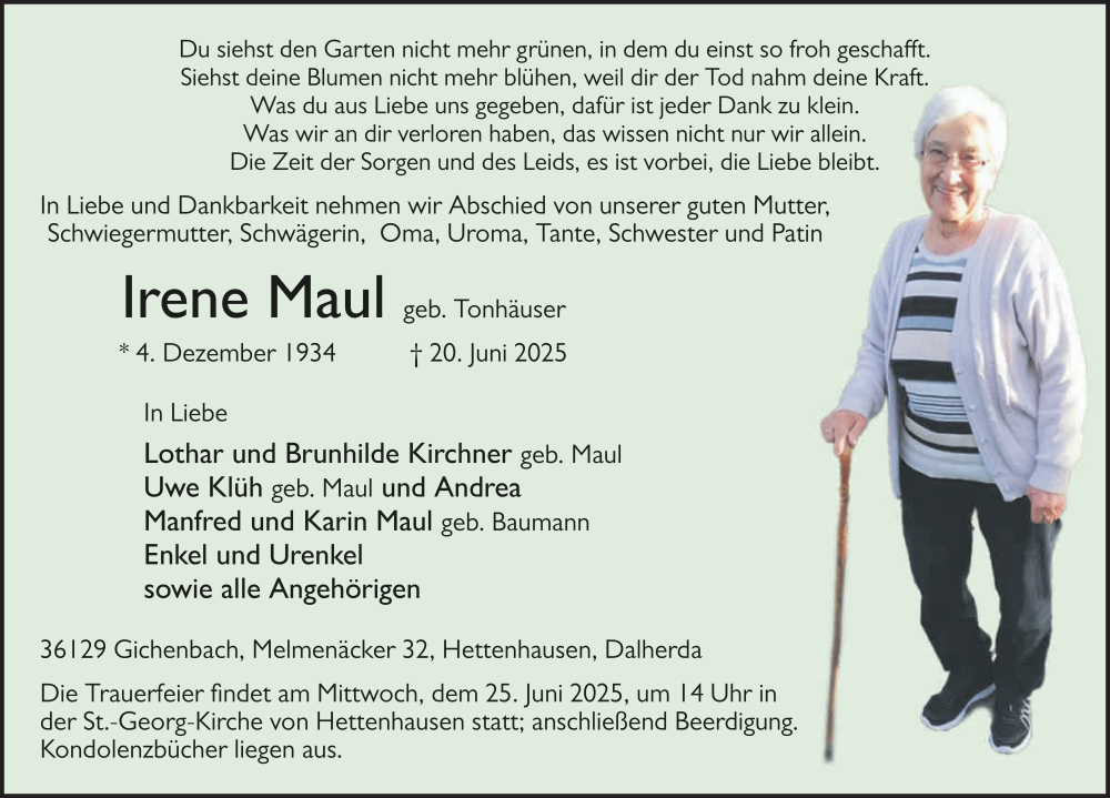 Hier finden Sie alle Traueranzeigen aus der Zeitung, die bisher für Irene Maul erschienen sind. Weitere Traueranzeigen, die in der Zeitung erscheinen, werden hier ebenfalls aufgelistet