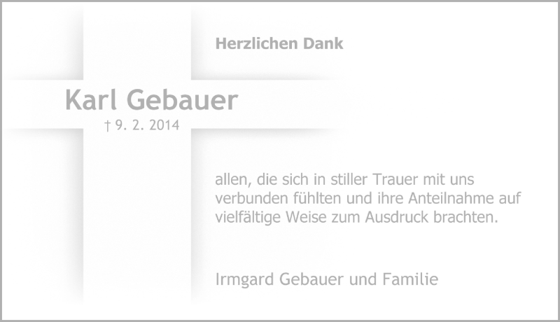 Hier finden Sie alle Traueranzeigen aus der Zeitung, die bisher für Karl Gebauer erschienen sind. Weitere Traueranzeigen, die in der Zeitung erscheinen, werden hier ebenfalls aufgelistet