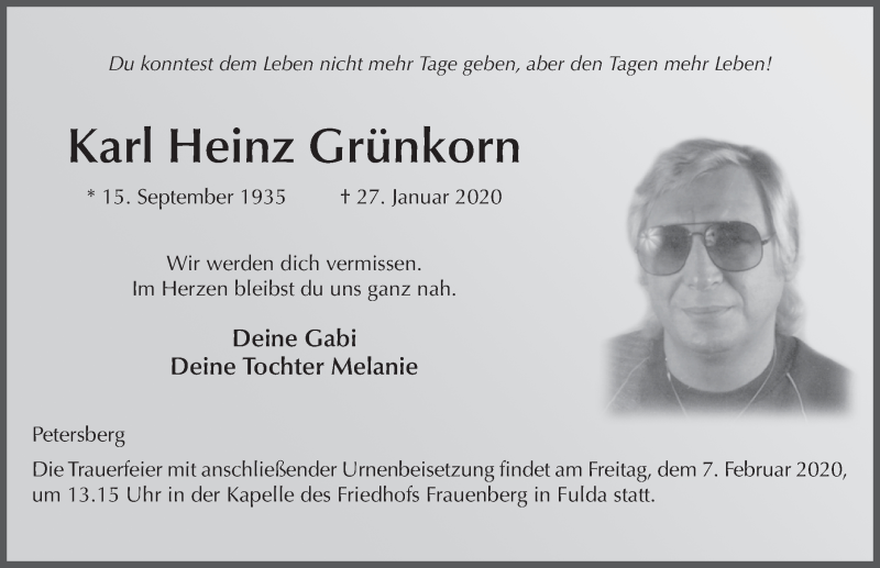 Hier finden Sie alle Traueranzeigen aus der Zeitung, die bisher für Karl Heinz Grünkorn erschienen sind. Weitere Traueranzeigen, die in der Zeitung erscheinen, werden hier ebenfalls aufgelistet