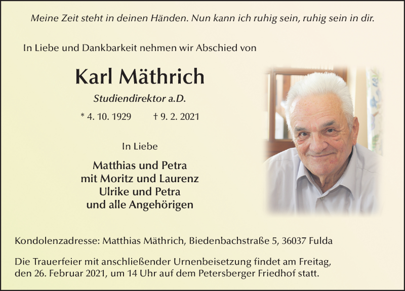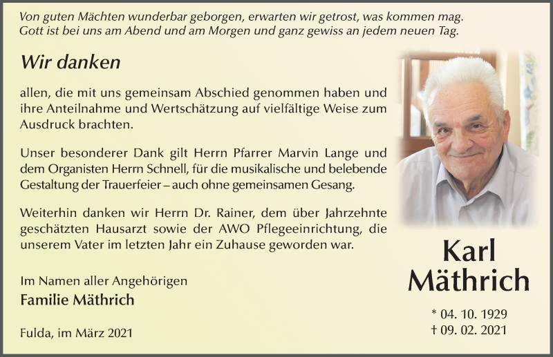 Hier finden Sie alle Traueranzeigen aus der Zeitung, die bisher für Karl Mäthrich erschienen sind. Weitere Traueranzeigen, die in der Zeitung erscheinen, werden hier ebenfalls aufgelistet