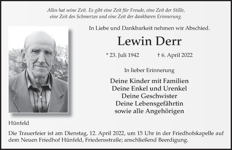 Hier finden Sie alle Traueranzeigen aus der Zeitung, die bisher für Lewin Derr erschienen sind. Weitere Traueranzeigen, die in der Zeitung erscheinen, werden hier ebenfalls aufgelistet