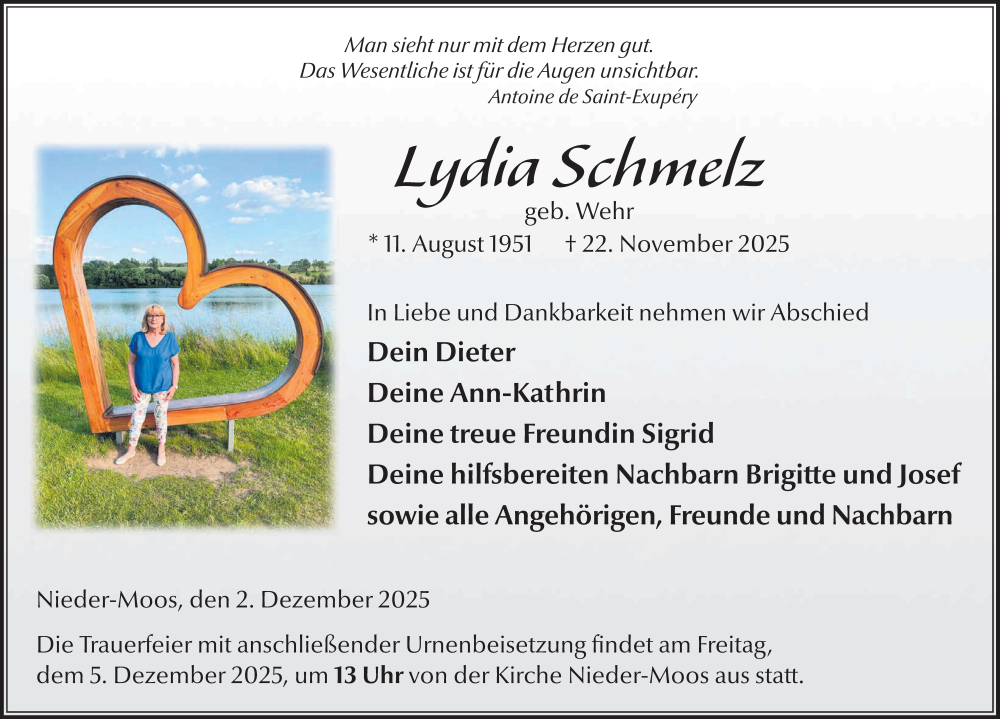 Hier finden Sie alle Traueranzeigen aus der Zeitung, die bisher für Lydia Schmelz erschienen sind. Weitere Traueranzeigen, die in der Zeitung erscheinen, werden hier ebenfalls aufgelistet
