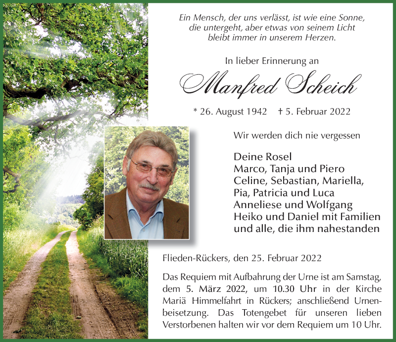 Hier finden Sie alle Traueranzeigen aus der Zeitung, die bisher für Manfred Scheich erschienen sind. Weitere Traueranzeigen, die in der Zeitung erscheinen, werden hier ebenfalls aufgelistet