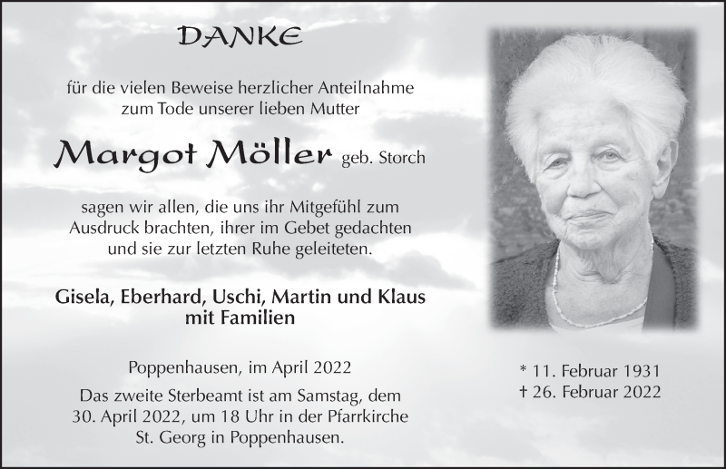 Hier finden Sie alle Traueranzeigen aus der Zeitung, die bisher für Margot Möller erschienen sind. Weitere Traueranzeigen, die in der Zeitung erscheinen, werden hier ebenfalls aufgelistet