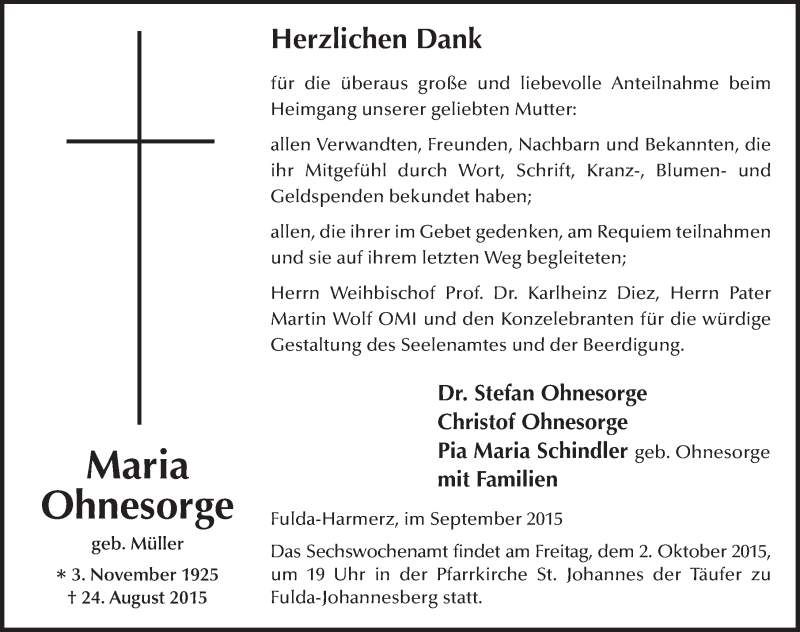 Hier finden Sie alle Traueranzeigen aus der Zeitung, die bisher für Maria Ohnesorge erschienen sind. Weitere Traueranzeigen, die in der Zeitung erscheinen, werden hier ebenfalls aufgelistet