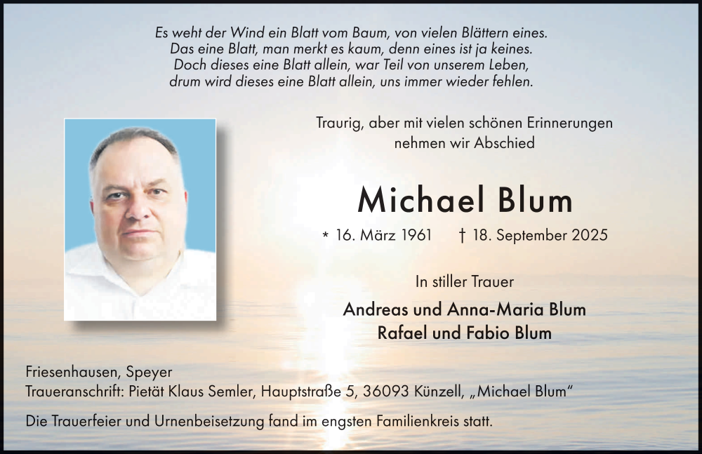 Hier finden Sie alle Traueranzeigen aus der Zeitung, die bisher für Michael Blum erschienen sind. Weitere Traueranzeigen, die in der Zeitung erscheinen, werden hier ebenfalls aufgelistet