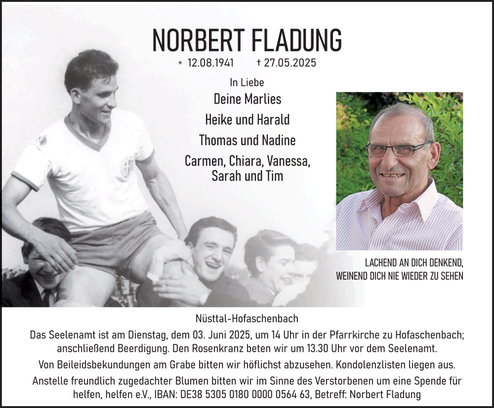 Hier finden Sie alle Traueranzeigen aus der Zeitung, die bisher für Norbert Fladung erschienen sind. Weitere Traueranzeigen, die in der Zeitung erscheinen, werden hier ebenfalls aufgelistet
