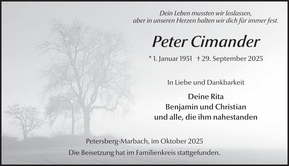 Hier finden Sie alle Traueranzeigen aus der Zeitung, die bisher für Peter Cimander erschienen sind. Weitere Traueranzeigen, die in der Zeitung erscheinen, werden hier ebenfalls aufgelistet