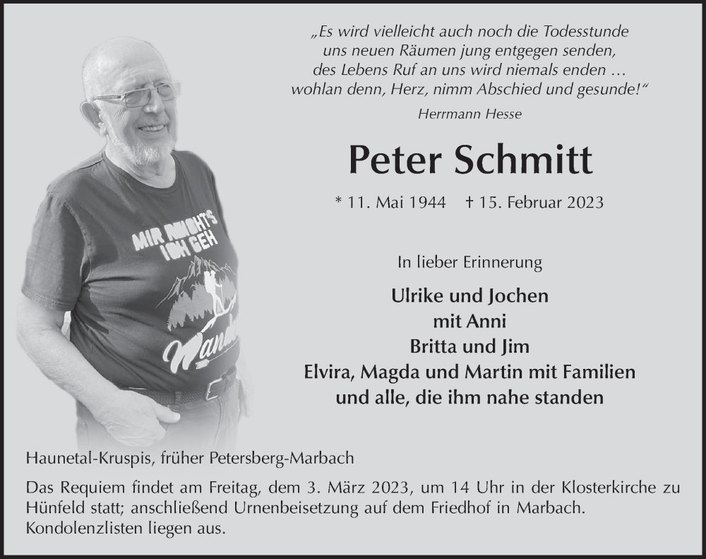 Hier finden Sie alle Traueranzeigen aus der Zeitung, die bisher für Peter Schmitt erschienen sind. Weitere Traueranzeigen, die in der Zeitung erscheinen, werden hier ebenfalls aufgelistet