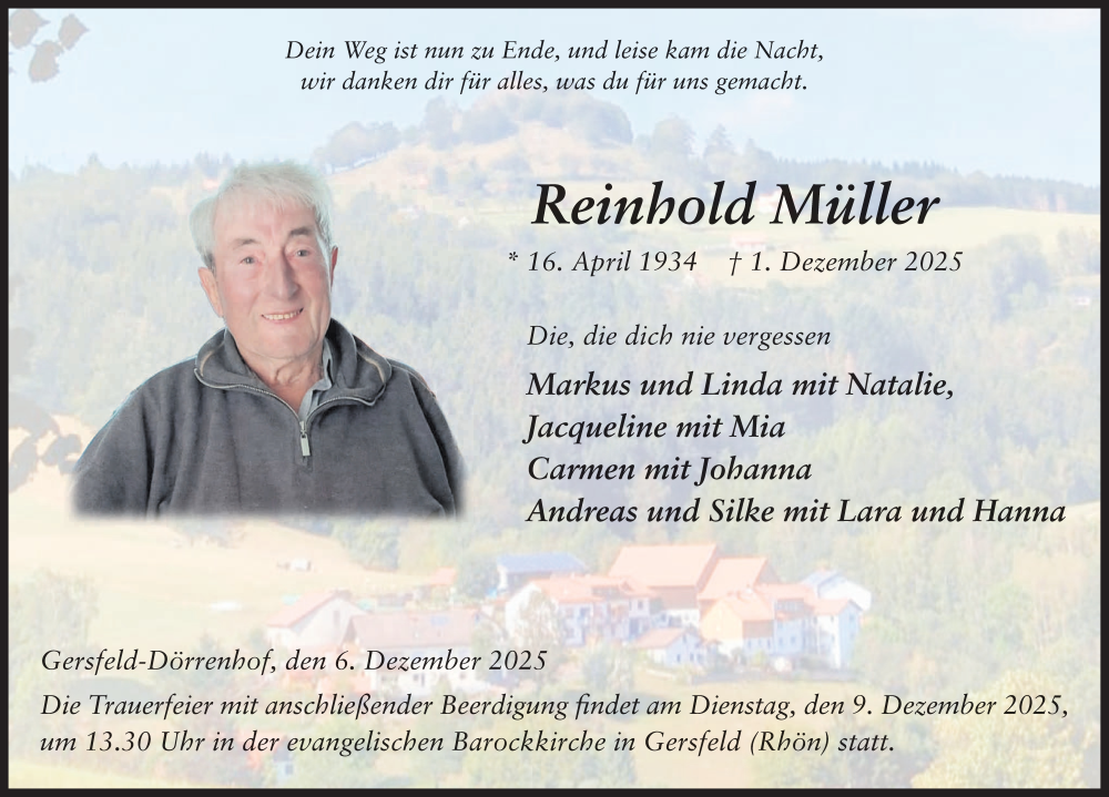 Hier finden Sie alle Traueranzeigen aus der Zeitung, die bisher für Reinhold Müller erschienen sind. Weitere Traueranzeigen, die in der Zeitung erscheinen, werden hier ebenfalls aufgelistet