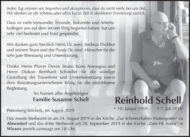 Hier finden Sie alle Traueranzeigen aus der Zeitung, die bisher für Reinhold Schell erschienen sind. Weitere Traueranzeigen, die in der Zeitung erscheinen, werden hier ebenfalls aufgelistet