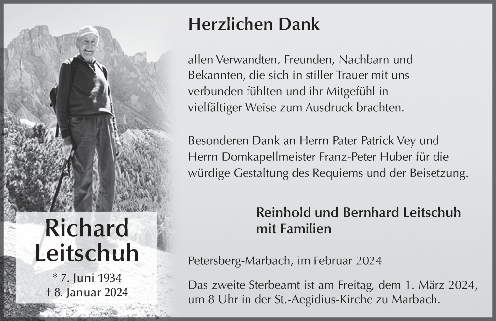 Hier finden Sie alle Traueranzeigen aus der Zeitung, die bisher für Richard Leitschuh erschienen sind. Weitere Traueranzeigen, die in der Zeitung erscheinen, werden hier ebenfalls aufgelistet