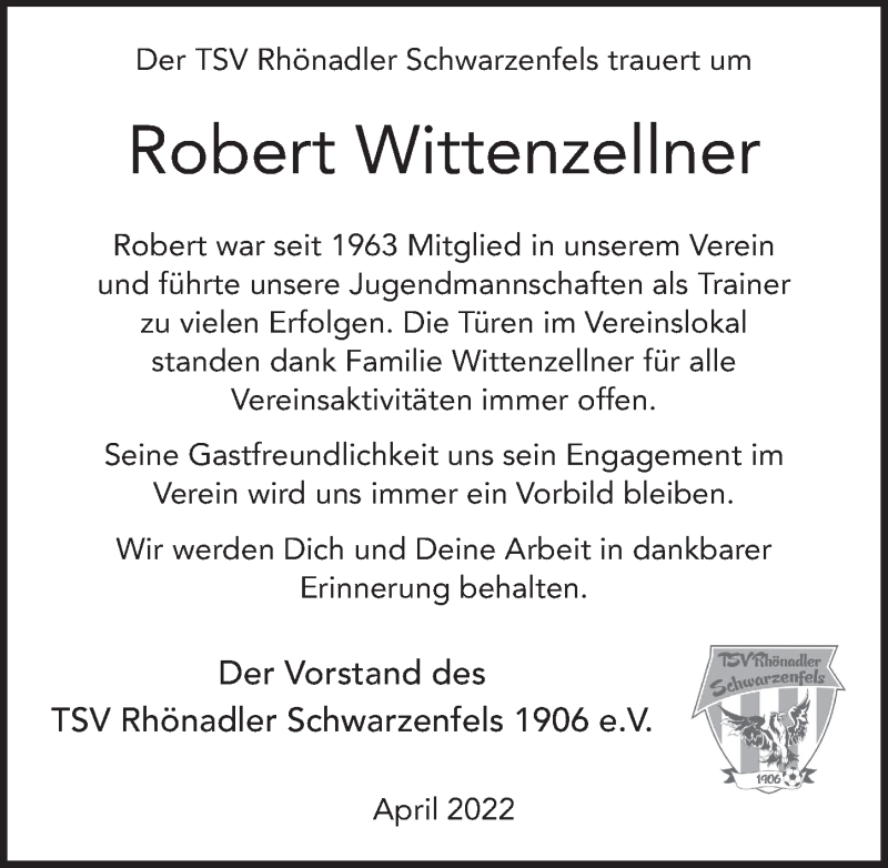 Hier finden Sie alle Traueranzeigen aus der Zeitung, die bisher für Robert Wittenzellner erschienen sind. Weitere Traueranzeigen, die in der Zeitung erscheinen, werden hier ebenfalls aufgelistet