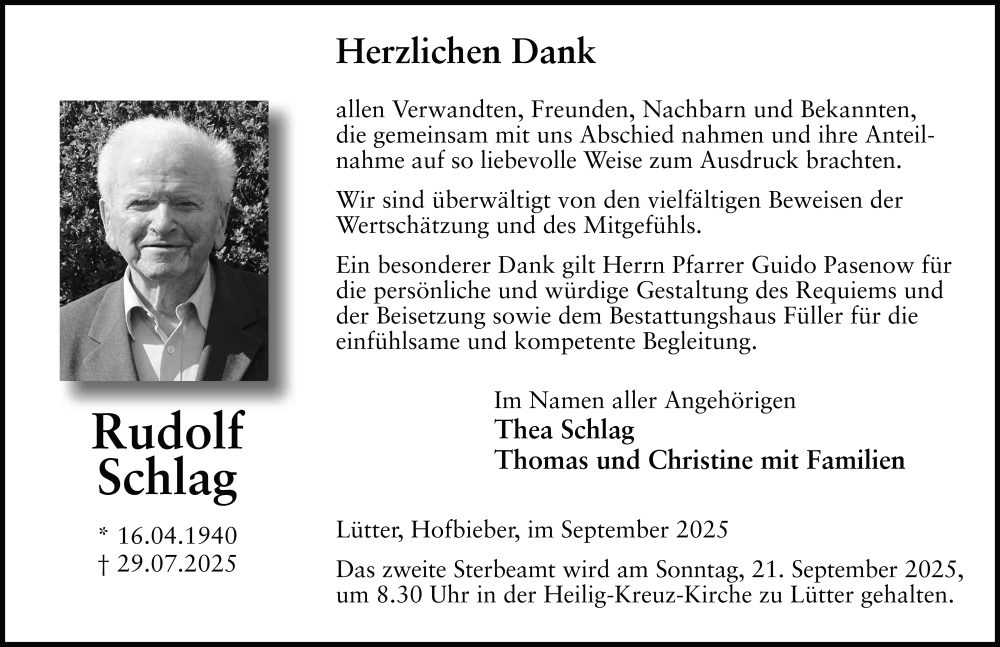 Hier finden Sie alle Traueranzeigen aus der Zeitung, die bisher für Rudolf Schlag erschienen sind. Weitere Traueranzeigen, die in der Zeitung erscheinen, werden hier ebenfalls aufgelistet