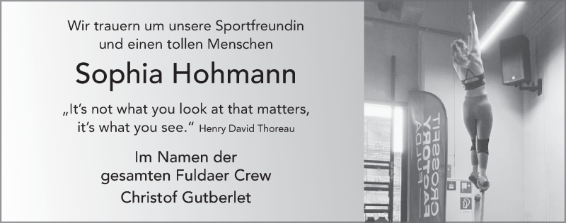 Hier finden Sie alle Traueranzeigen aus der Zeitung, die bisher für Sophia Hohmann erschienen sind. Weitere Traueranzeigen, die in der Zeitung erscheinen, werden hier ebenfalls aufgelistet