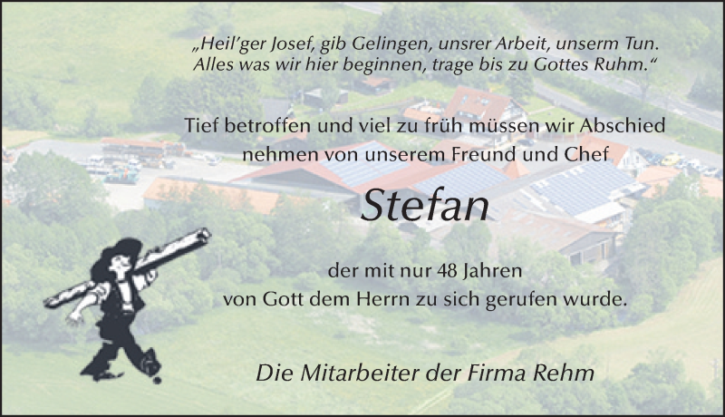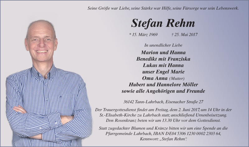 Hier finden Sie alle Traueranzeigen aus der Zeitung, die bisher für Stefan Rehm erschienen sind. Weitere Traueranzeigen, die in der Zeitung erscheinen, werden hier ebenfalls aufgelistet