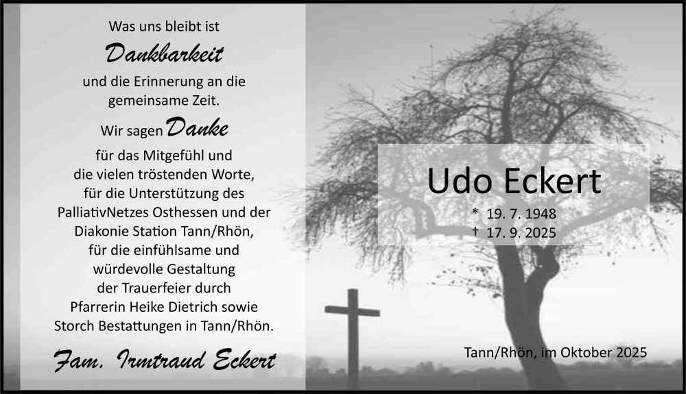 Hier finden Sie alle Traueranzeigen aus der Zeitung, die bisher für Udo Eckert erschienen sind. Weitere Traueranzeigen, die in der Zeitung erscheinen, werden hier ebenfalls aufgelistet
