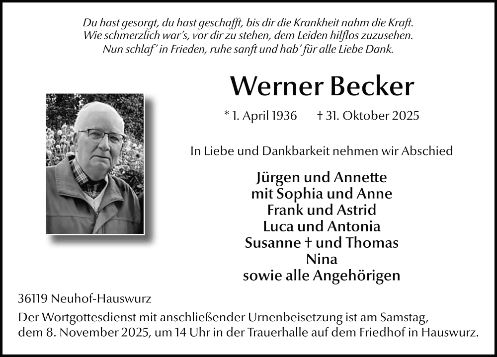 Hier finden Sie alle Traueranzeigen aus der Zeitung, die bisher für Werner Becker erschienen sind. Weitere Traueranzeigen, die in der Zeitung erscheinen, werden hier ebenfalls aufgelistet
