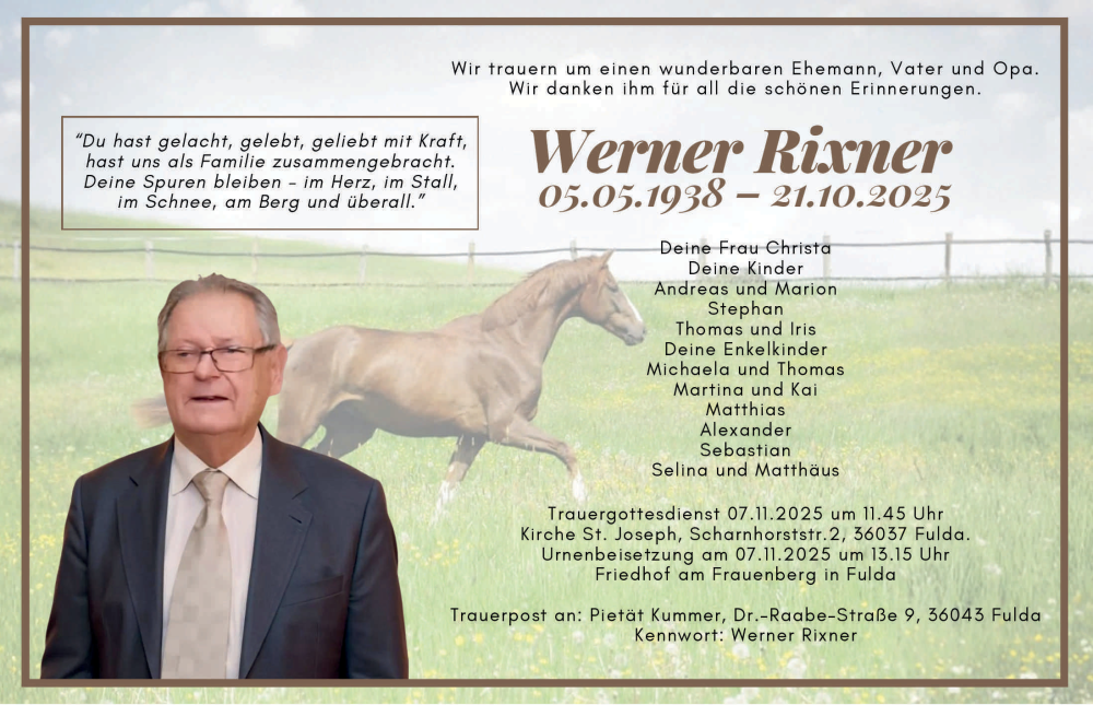 Hier finden Sie alle Traueranzeigen aus der Zeitung, die bisher für Werner Rixner erschienen sind. Weitere Traueranzeigen, die in der Zeitung erscheinen, werden hier ebenfalls aufgelistet