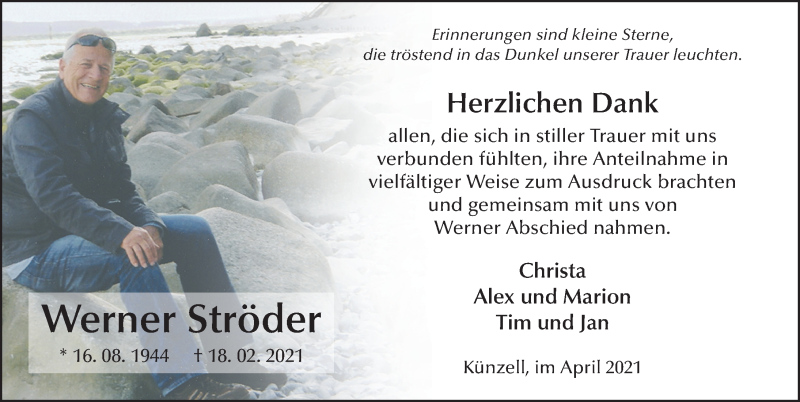 Hier finden Sie alle Traueranzeigen aus der Zeitung, die bisher für Werner Ströder erschienen sind. Weitere Traueranzeigen, die in der Zeitung erscheinen, werden hier ebenfalls aufgelistet