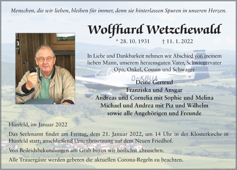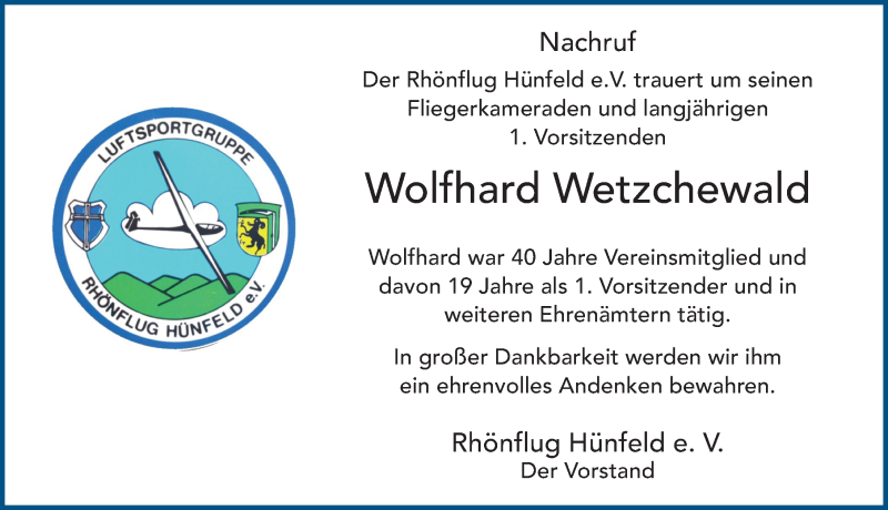 Hier finden Sie alle Traueranzeigen aus der Zeitung, die bisher für Wolfhard Wetzchewald erschienen sind. Weitere Traueranzeigen, die in der Zeitung erscheinen, werden hier ebenfalls aufgelistet